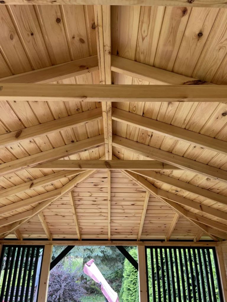 Nowoczesna altana ogrodowa ze świerku i sosny klasy C24 to połączenie solidnej konstrukcji z eleganckim wyglądem. Wykonana z struganego, suszonego komorowo drewna, zapewnia trwałość, stabilność i odporność na zmienne warunki pogodowe.