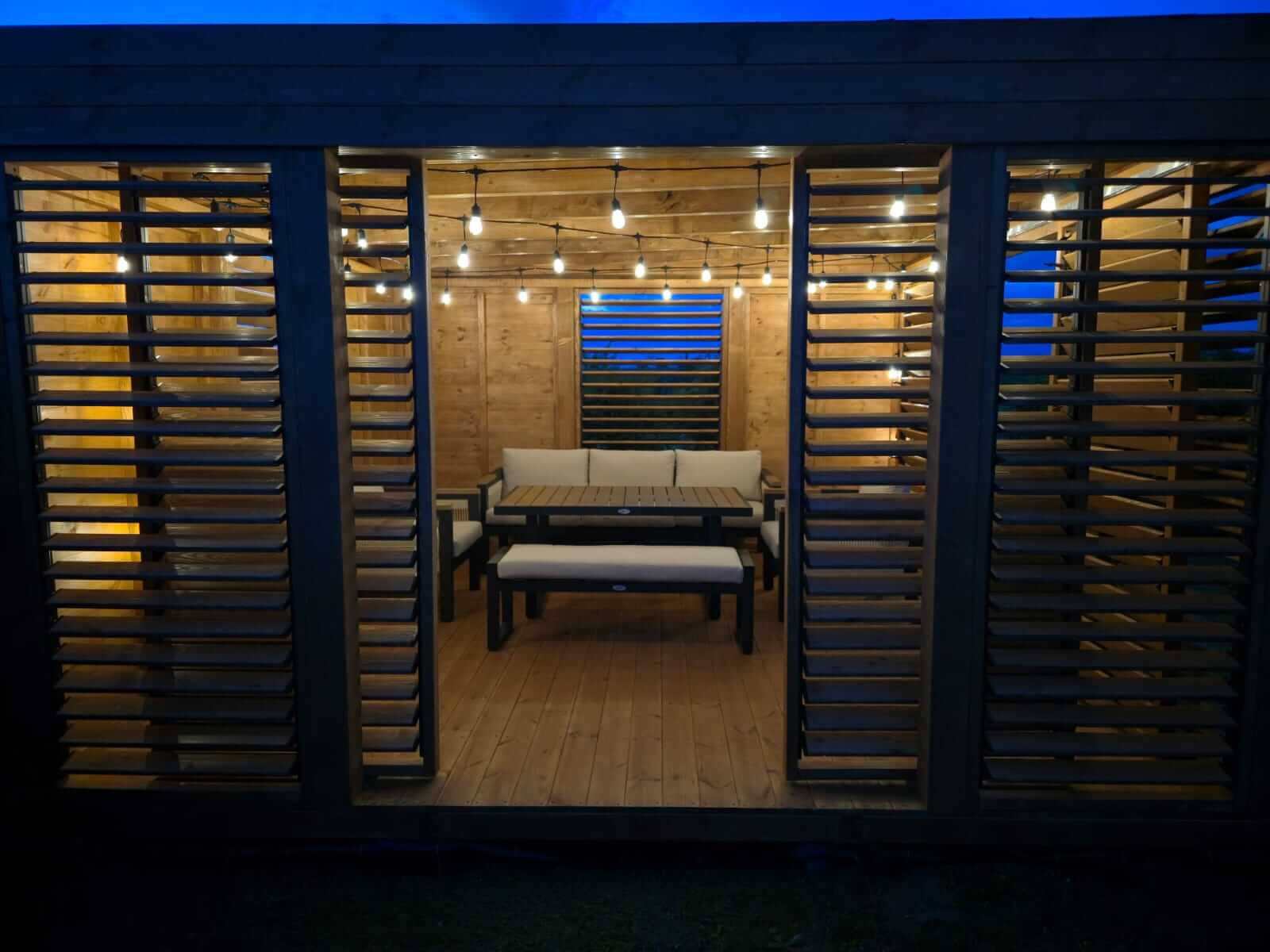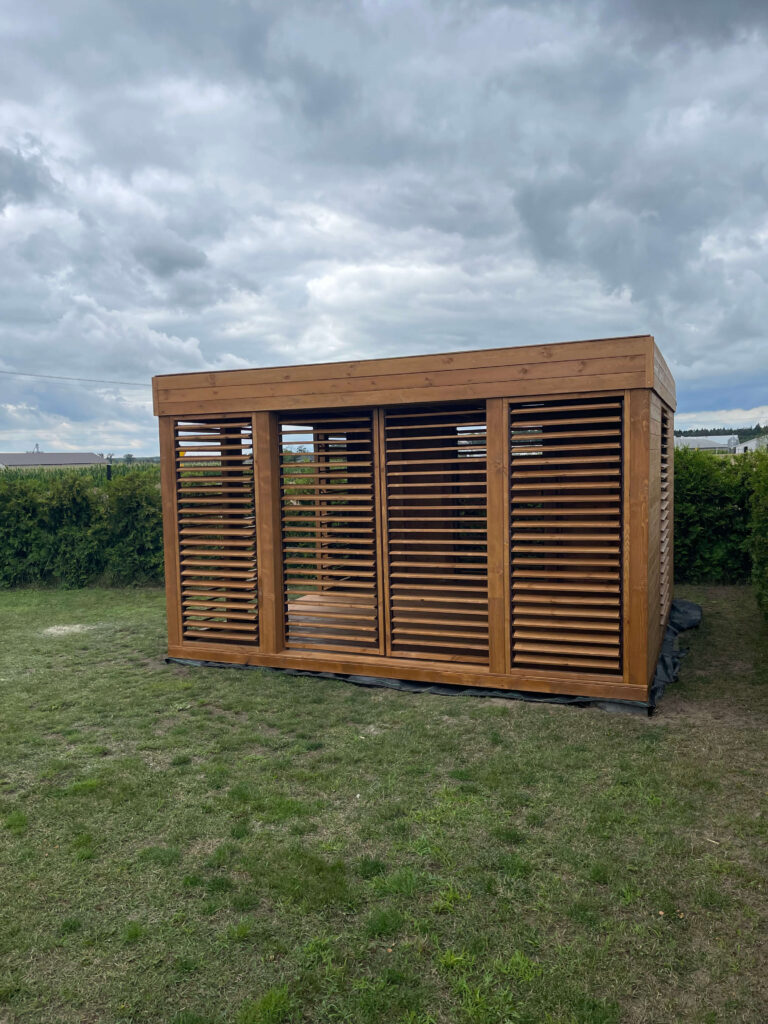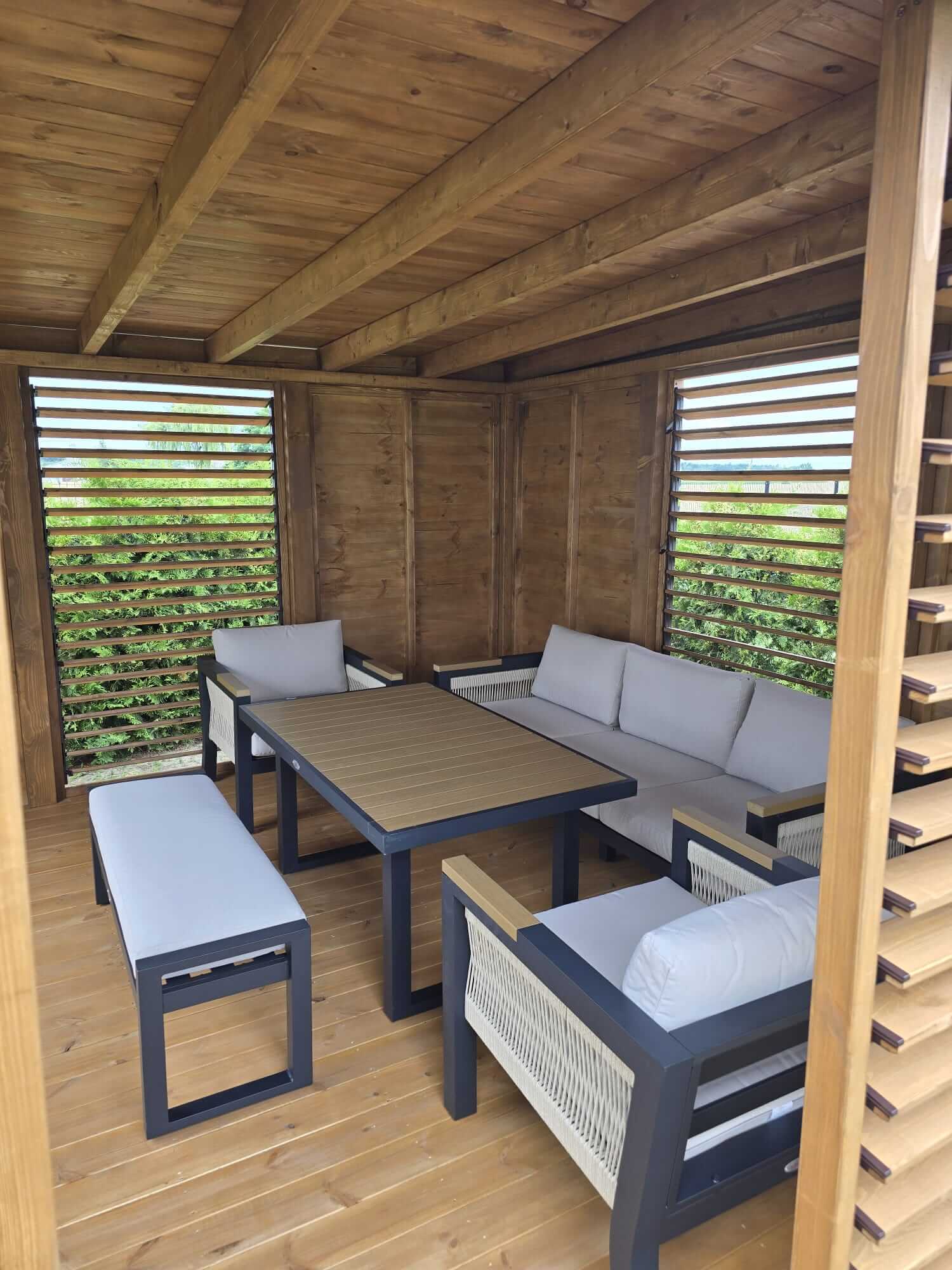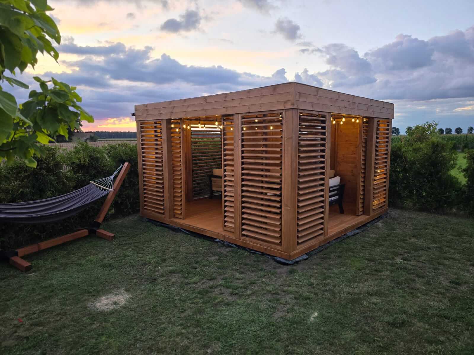 Nasza altana to doskonałe połączenie nowoczesnego designu, solidnego wykonania i praktycznych rozwiązań. Wyposażona w system ruchomych deseczek (żaluzji) oraz przesuwne drzwi, pozwala swobodnie regulować dopływ światła i stopień prywatności – dokładnie tak, jak potrzebujesz.